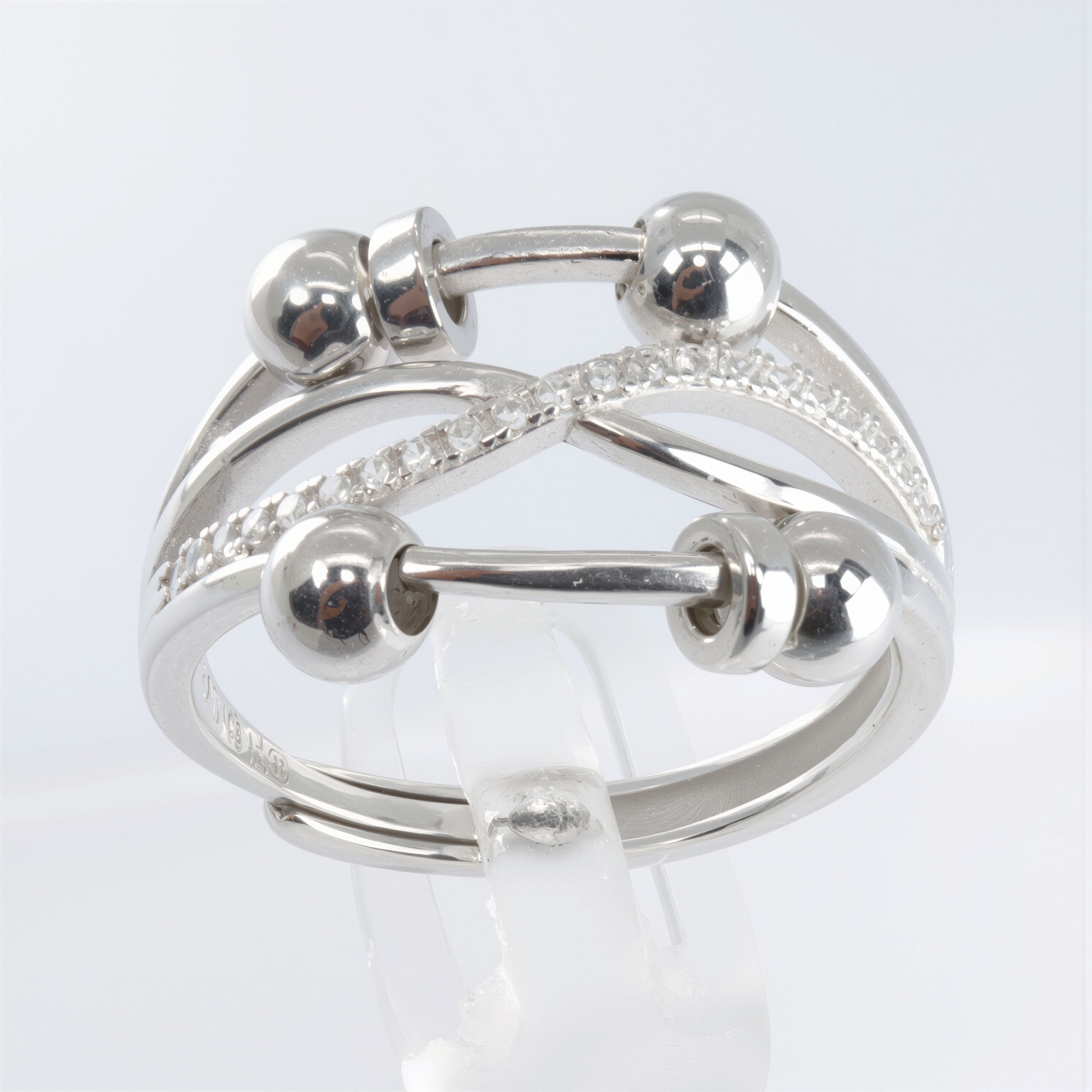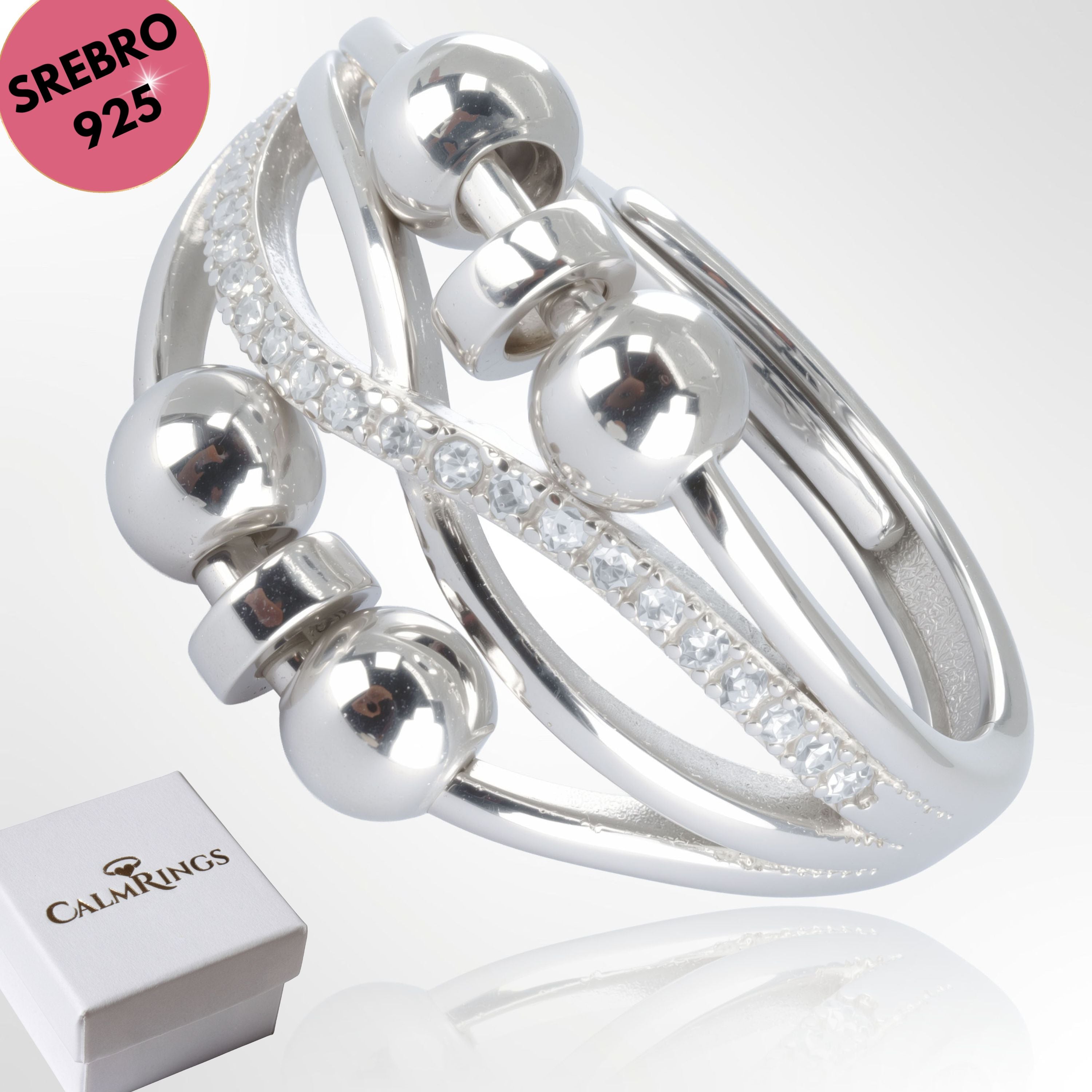 Elegancki anxiety ring ze SREBRA 925 z błyszczącymi cyrkoniami, damski, regulowany rozmiar