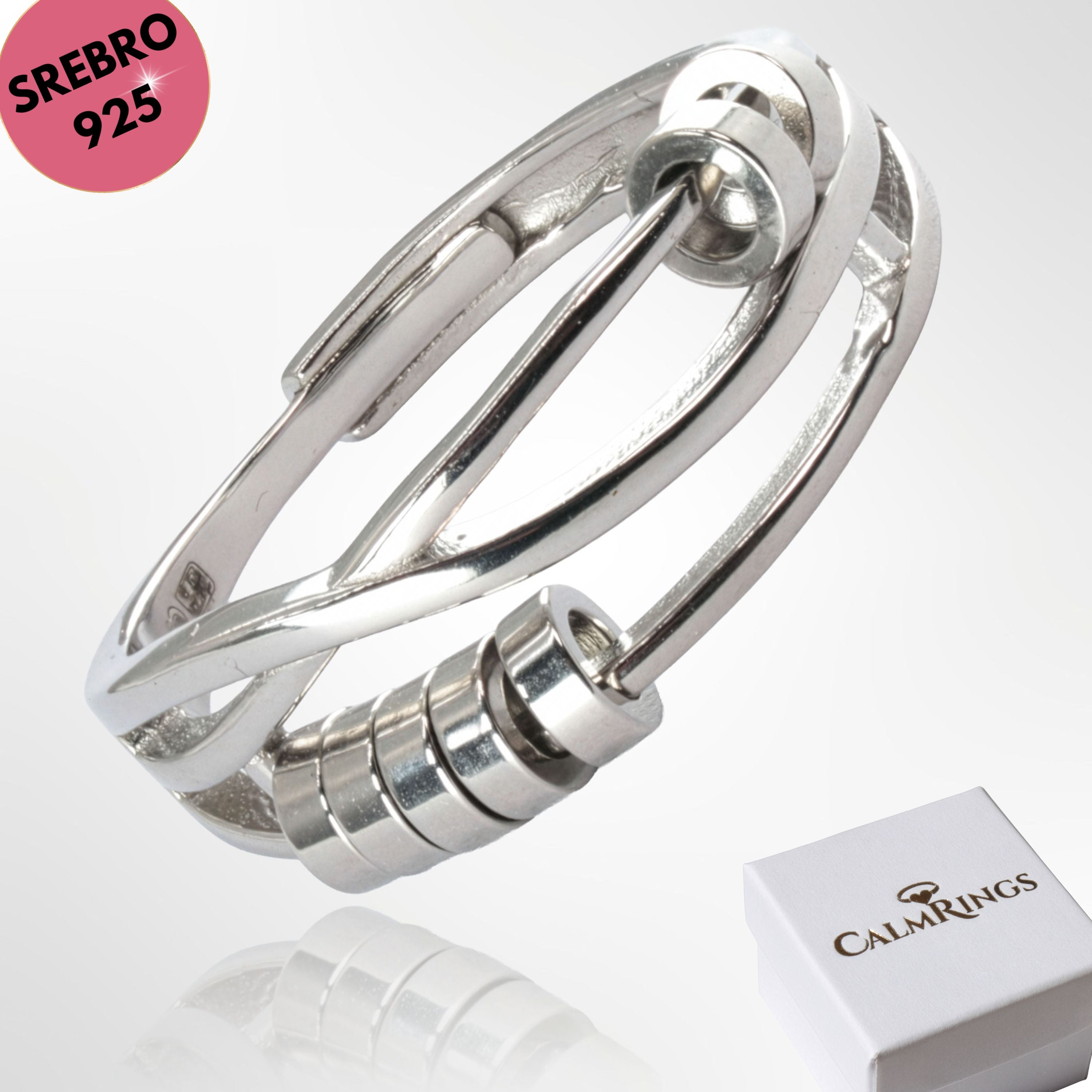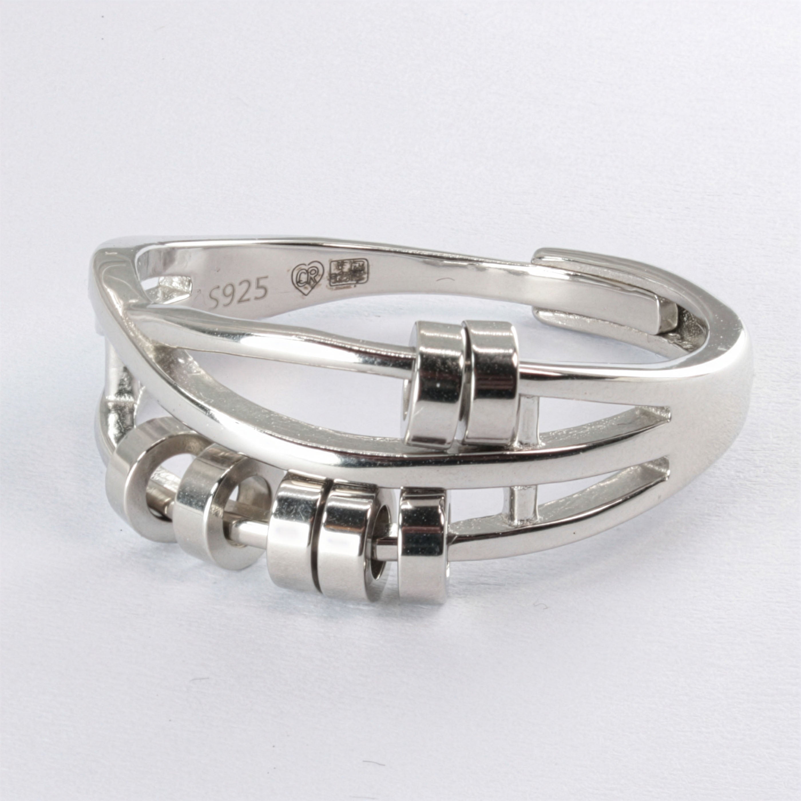 Elegancki pierścionek SREBRO 925 antystresowy z ruchomymi krążkami - regulowany