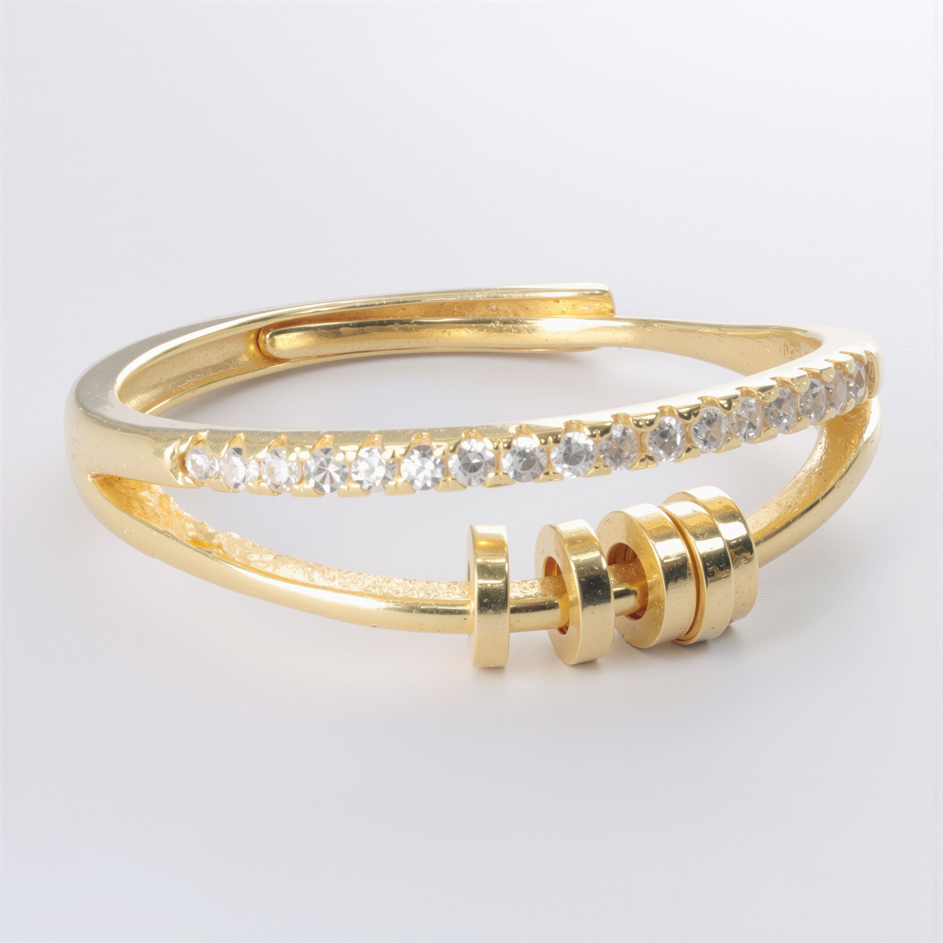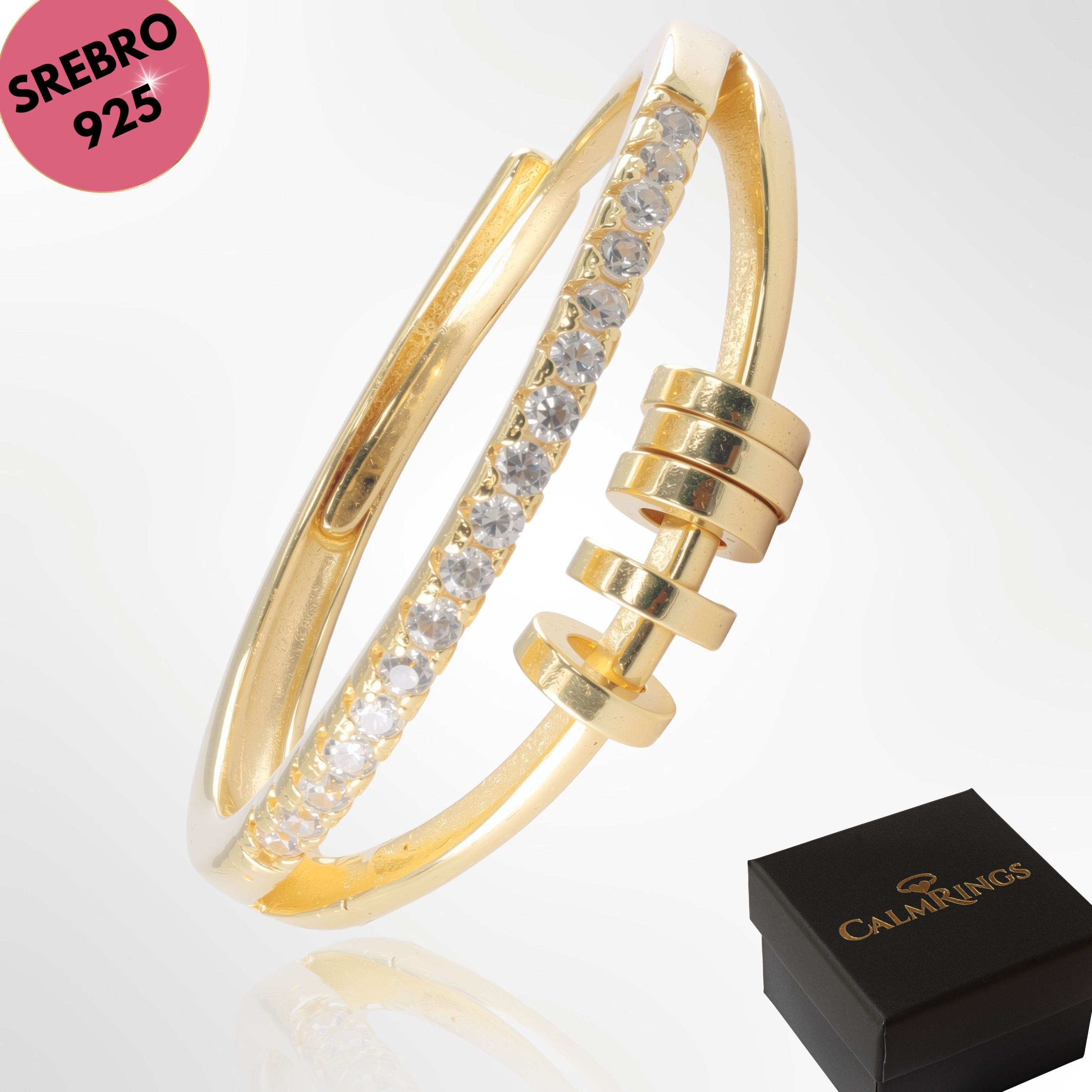 Pozłacany pierścionek SREBRO 925 z ruchomymi krążkami - delikatny, antystresowy, regulowany