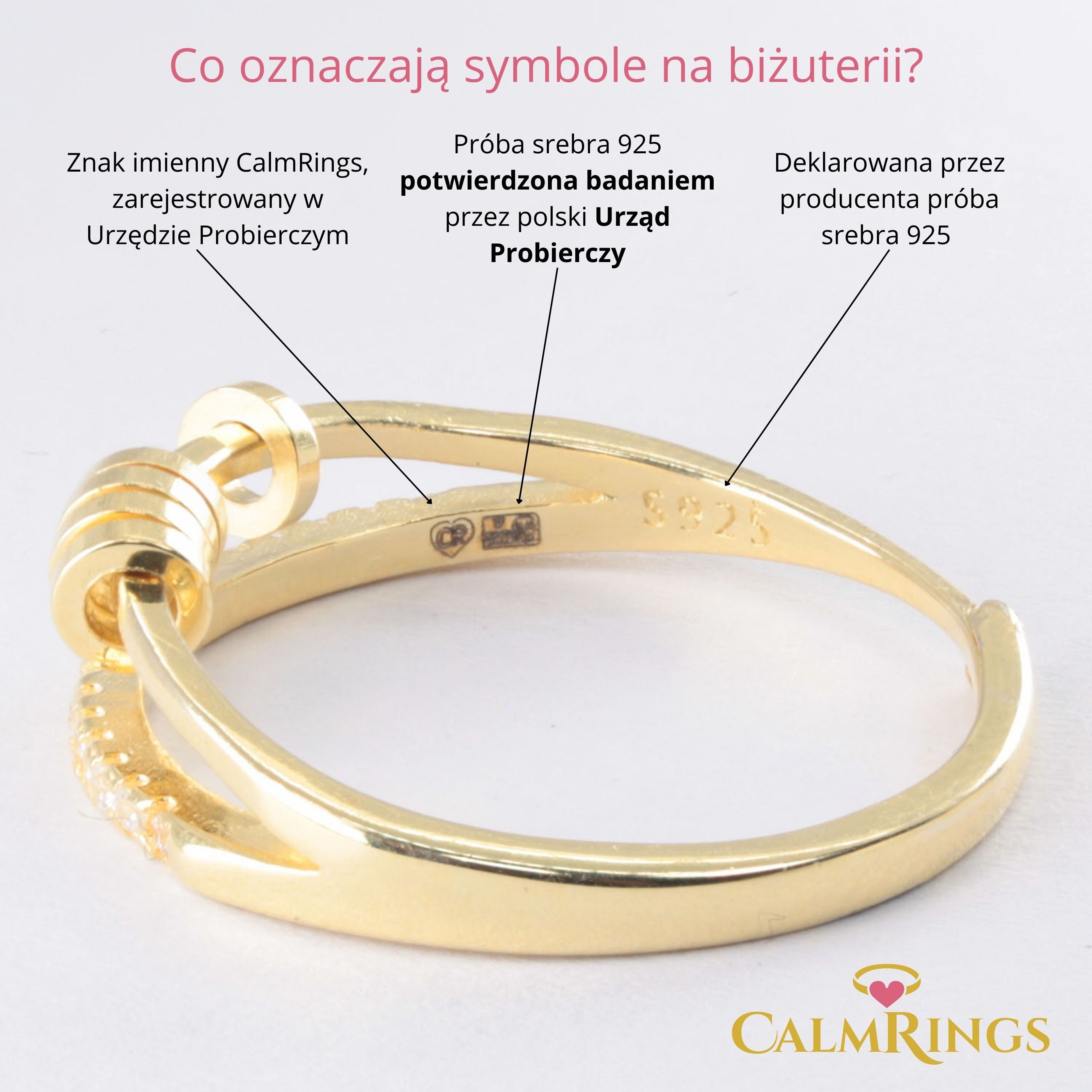 Delikatny, elegancki i jeszcze bardziej wyjątkowy w pozłacanym wydaniu - pierścionek antystresowy ze srebra 925, pokryty ciepłym złotem, łączy minimalistyczny design z funkcją relaksacyjną, która koi myśli w codziennym biegu.