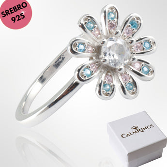 Pierścionek relaksacyjny na stres SREBRO 925 - obrotowy kwiatek z cyrkoniami